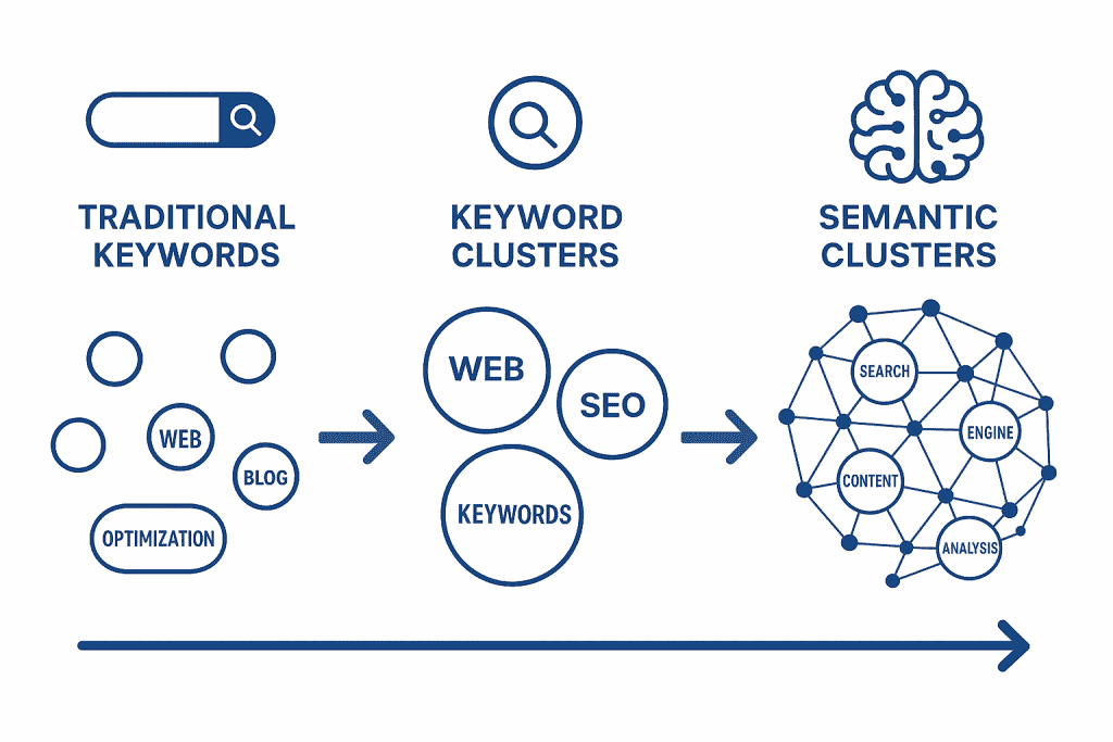 Semantic Clustering in Content Strategy – AI-Like Content Grouping.